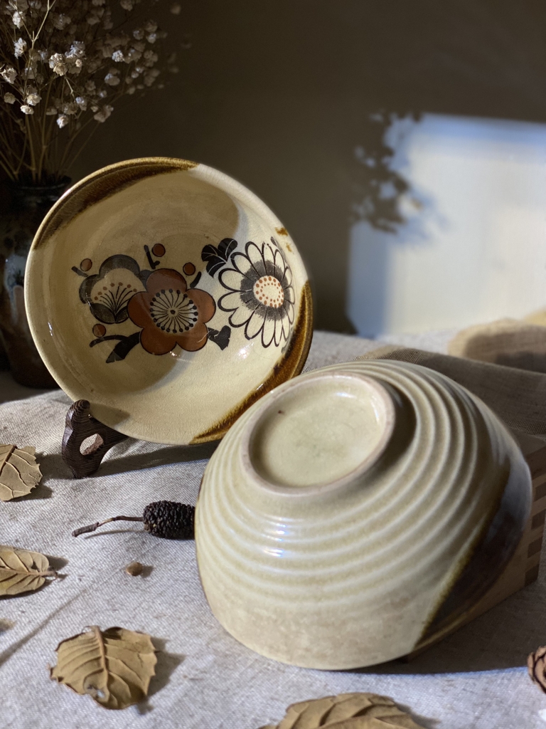 Bát ăn cơm men rạn hoạ tiết hoa nghệ thuật