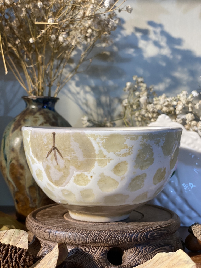 Bát men chấm vàng họa tiết cây