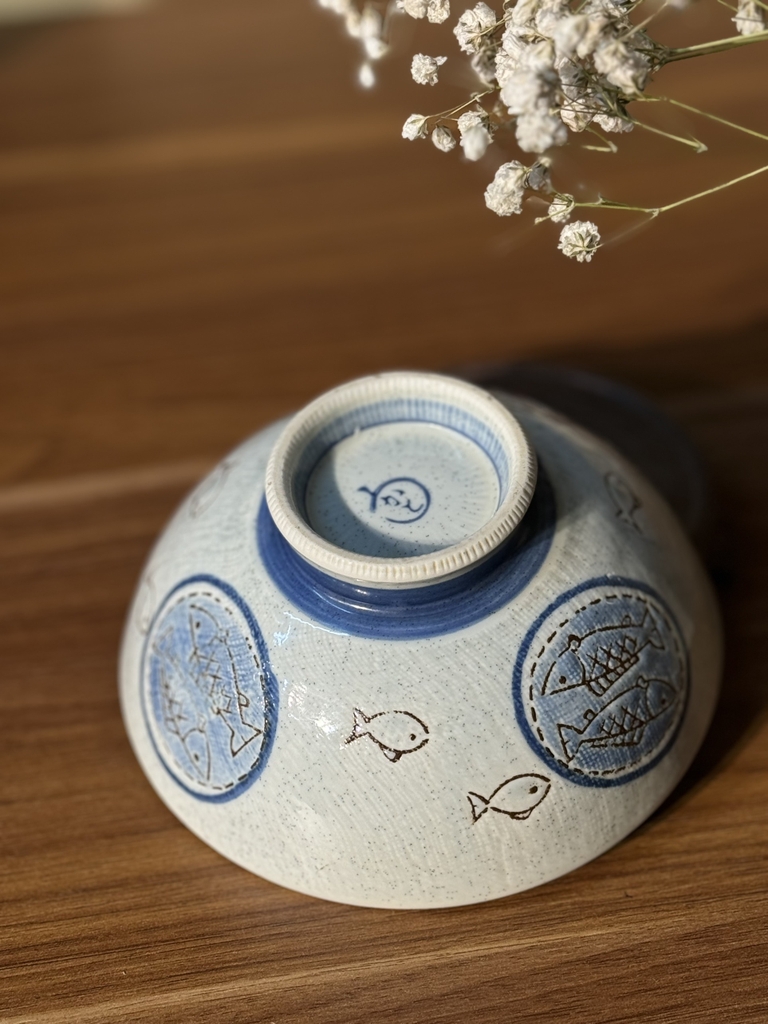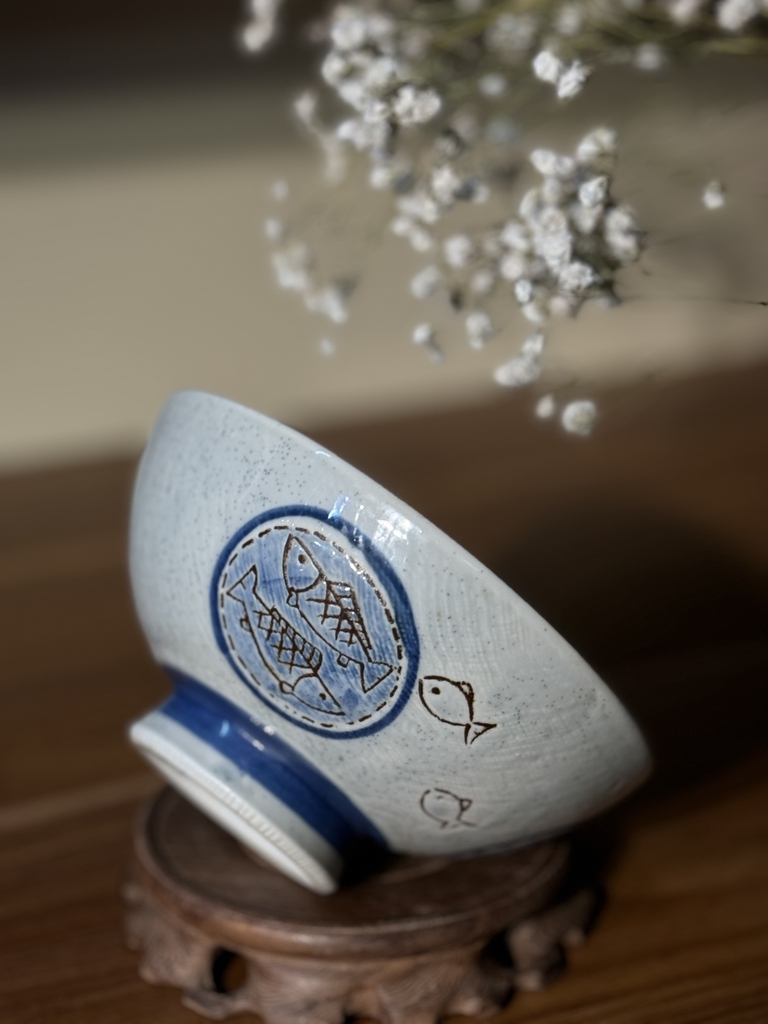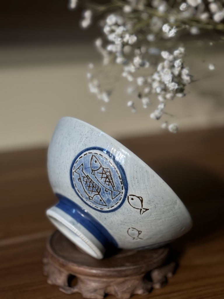 Bát mộc men tiêu vẽ cá đế răng cưa