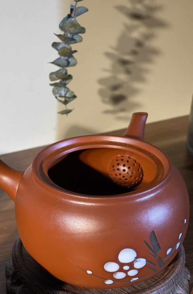 Bộ trà Tokoname đất đỏ vẽ hoa mai trắng