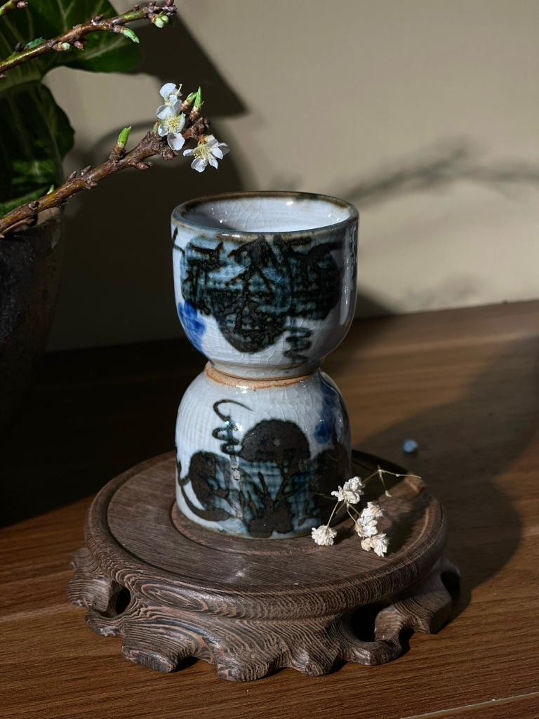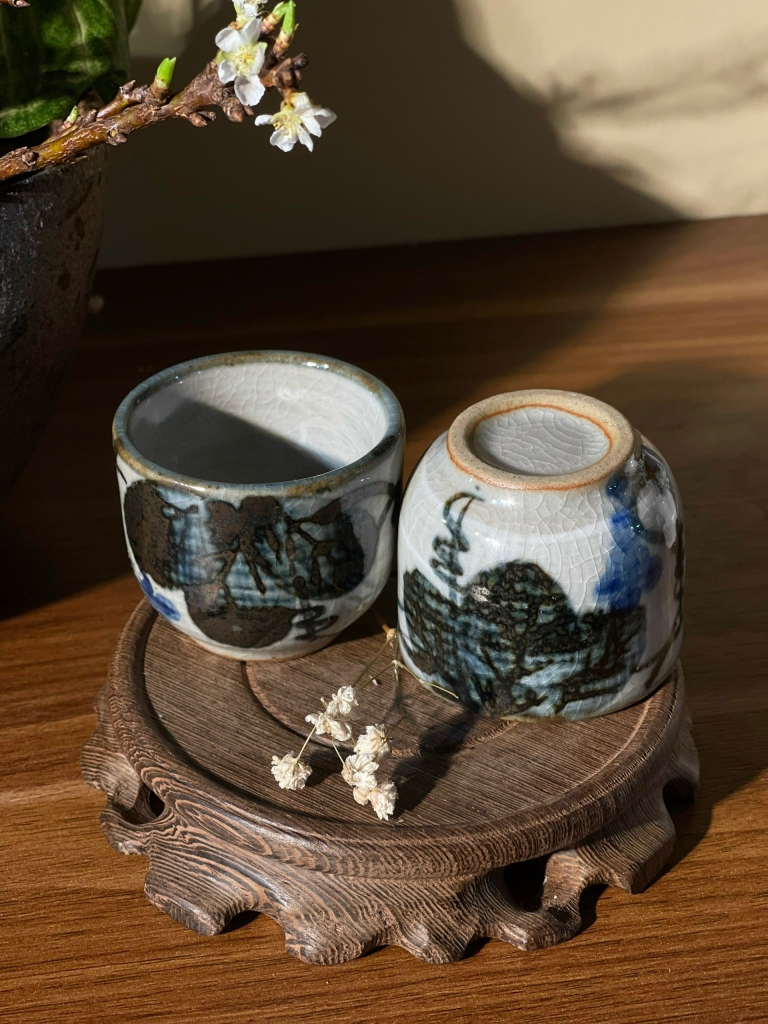 Cặp chén men rạn họa tiết độc đáo