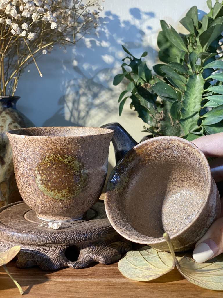 cặp cốc banko chấm men loang rêu