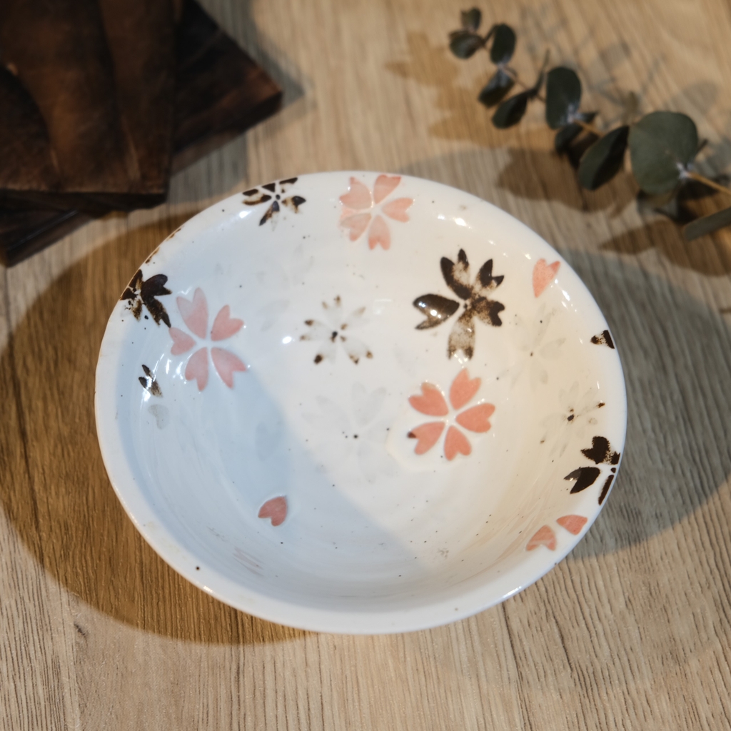Chén chấm mộc men sữa hoa đào