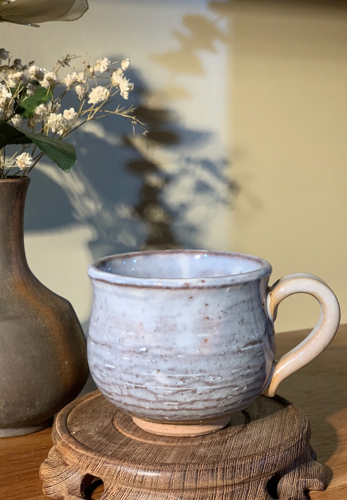 Cốc tráng men tím khoai môn vẽ viền nâu