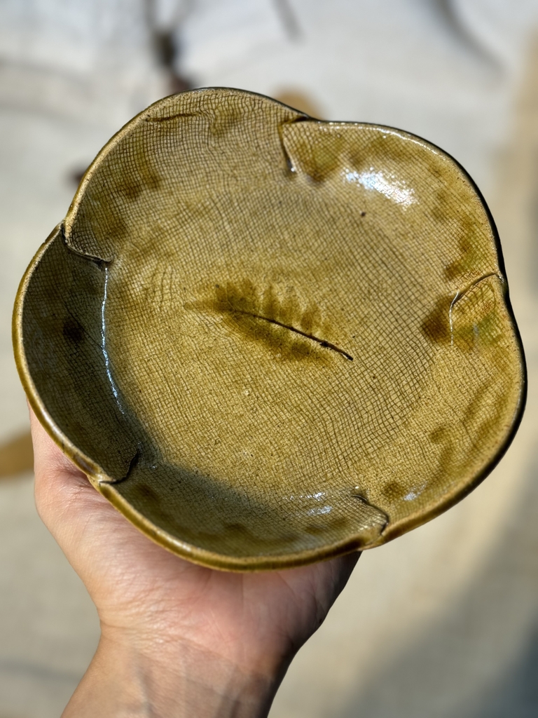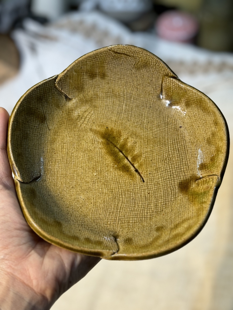 Đĩa cánh hoa vàng có đế chân