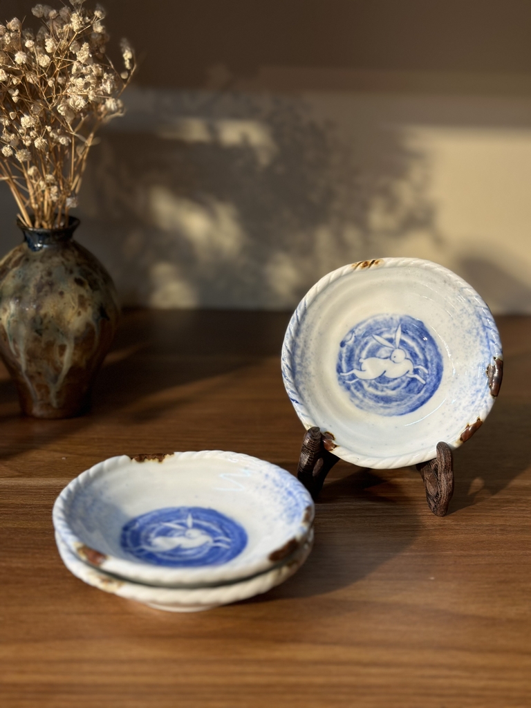 Đĩa chấm hình chú thỏ viền xoáy