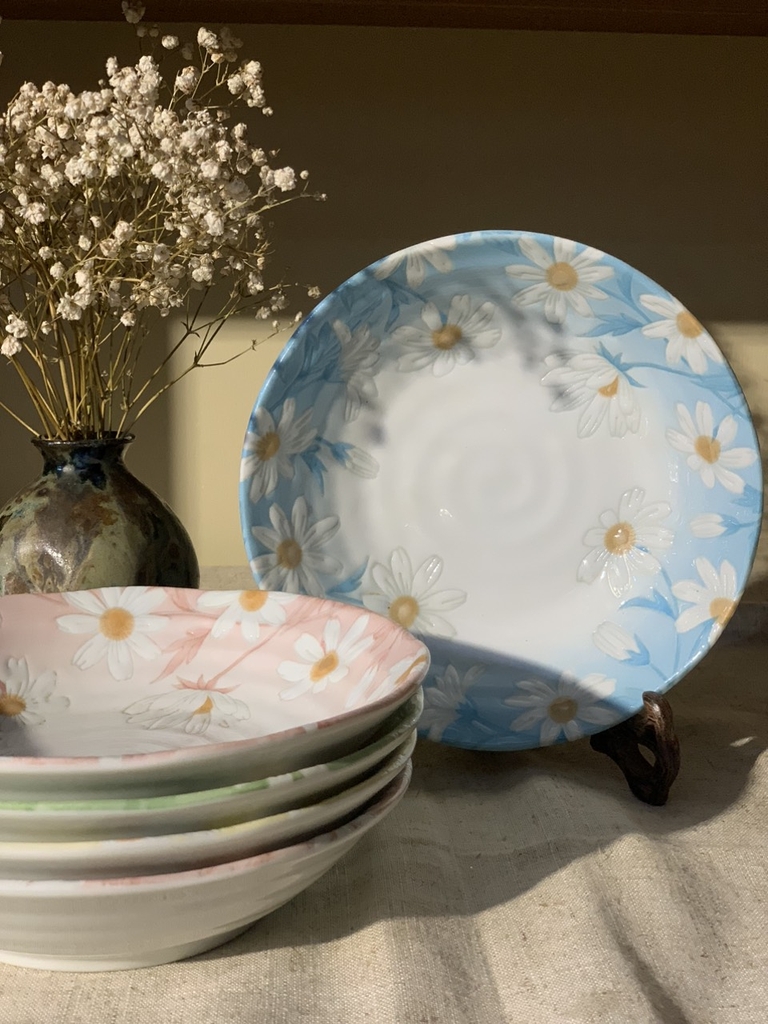 Đĩa hoa cúc vẽ nổi nhiều màu hãng Minoya