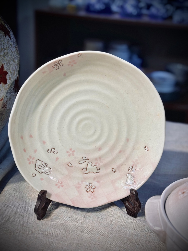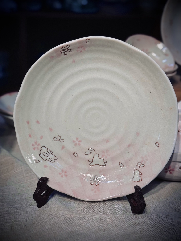 Đĩa hoa đào xoáy lòng họa tiết thỏ