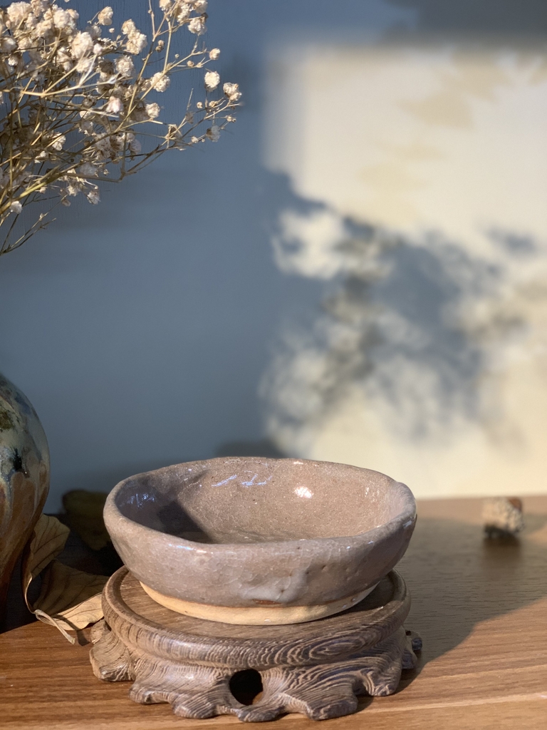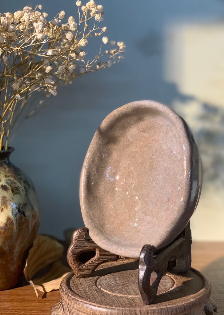 Đĩa mộc chấm sâu lòng men rạn cốt dày