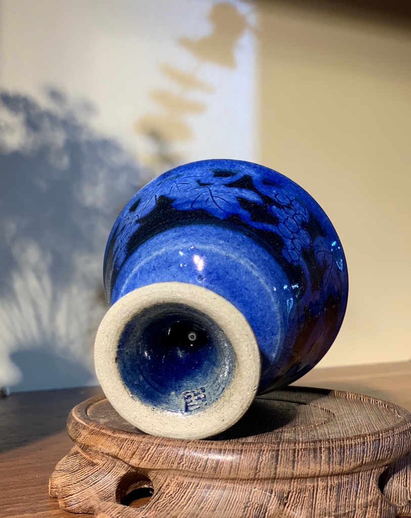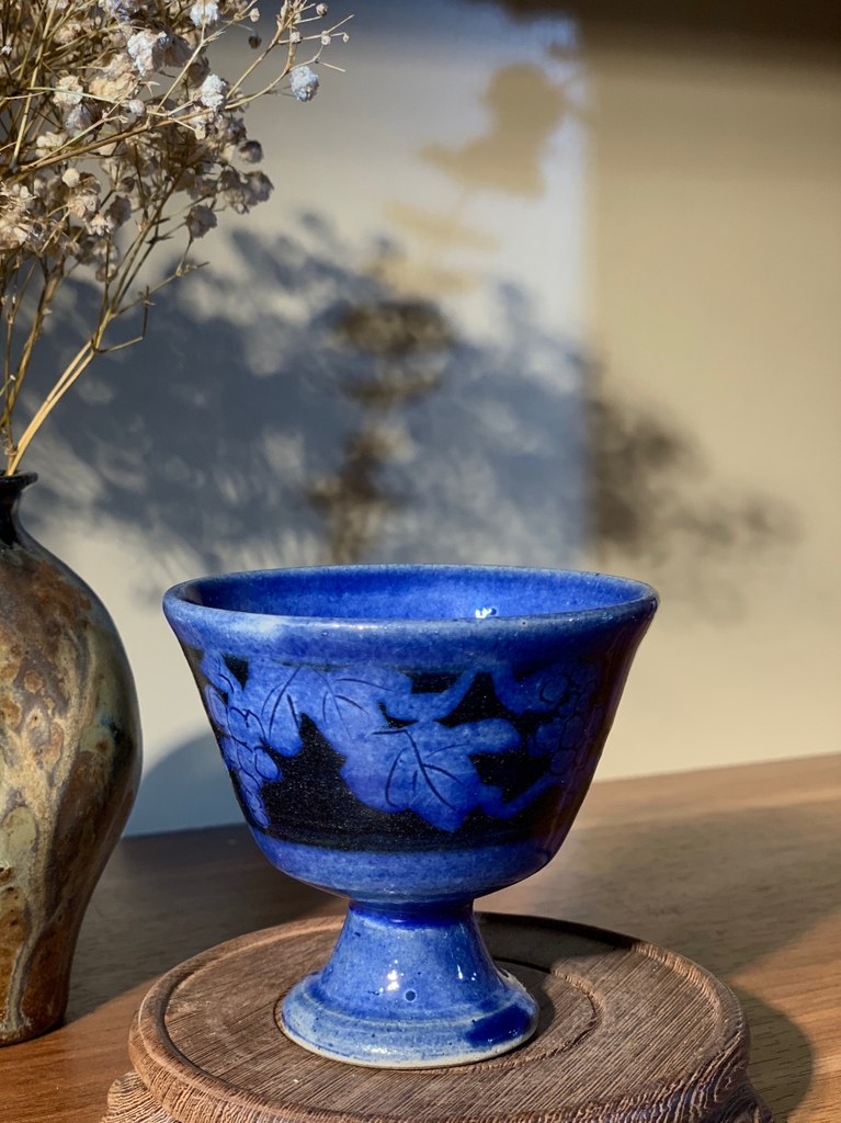 Ly rượu lam họa tiết chùm nho