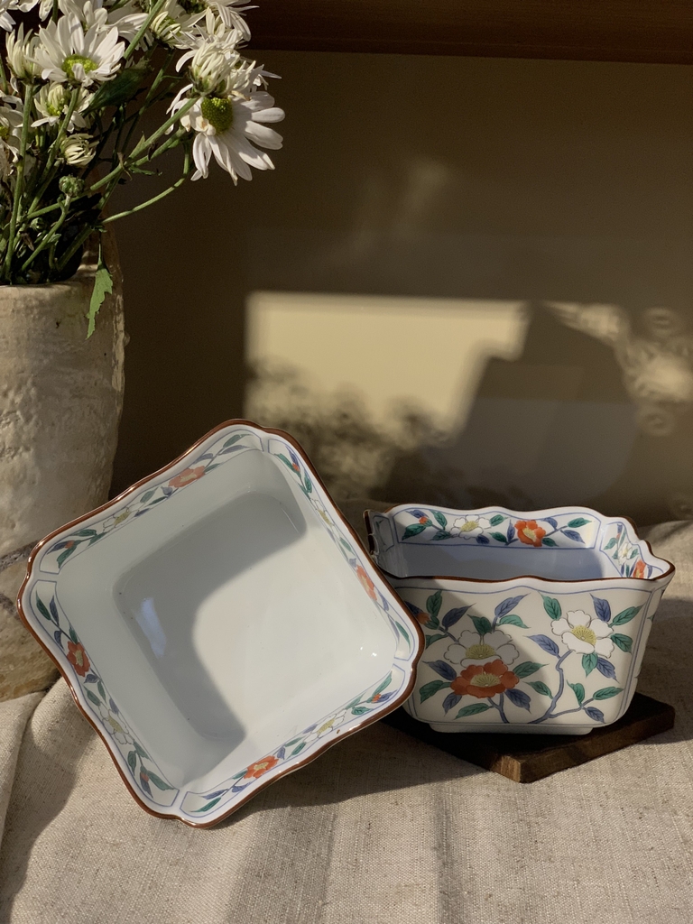 Thố ngũ sắc vẽ hoa viền nâu kt 10*6.5